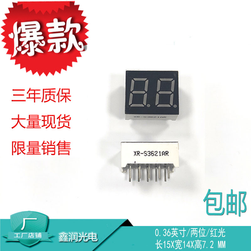XR-S3621AR-BR数码管/LED数码管 0.36英寸 2位 红光 数码管厂家